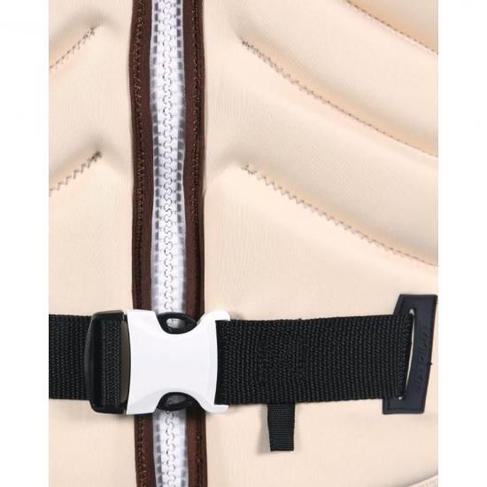 ・下部のバックルでベストが上の方にズレるのを防ぎます。